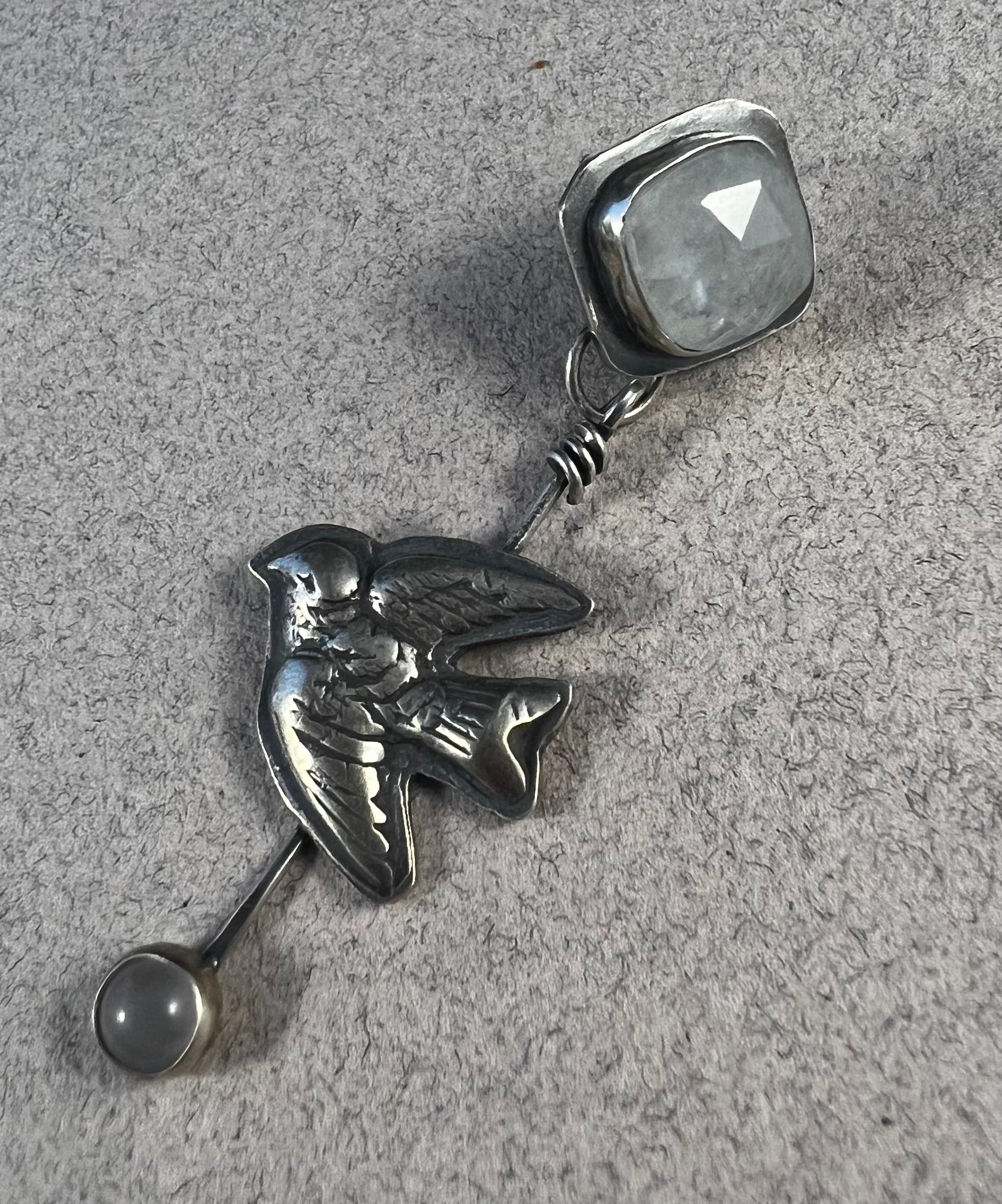 Sterling pressed and hand formed earrings with faceted moonstone studs and rose quartz dangles